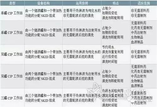 根据工作站罐体数量,CIP工作站可分为单罐CIP系统、双罐CIP系统和多罐CIP系统(如下表),制药企业可结合实际需求合理选择。
