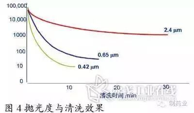 在保证清洗效果的情况下,缩短清洗时间对提高生产效率至关重要,清洗时间取决于污垢性质、化学作用、机械作用、温度、死角和表面抛光度等多个因素影响。例如,电解抛光的罐体能有效节省清洗时间(图4)。每套配液系统所需的清洗时间均会有所不同,实际所需清洗时间可在PQ(性能确认)阶段确认。