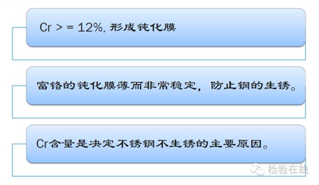 不锈钢的耐腐蚀性能一般随着铬含量的增加而提高,当钢中的铬含量Cr≥12%,会在钢的表面形成一层非常薄,但很致密的氧化膜(通称钝化膜),保护基体不再被氧化或腐蚀,不锈钢因此具有优良的耐蚀性能。