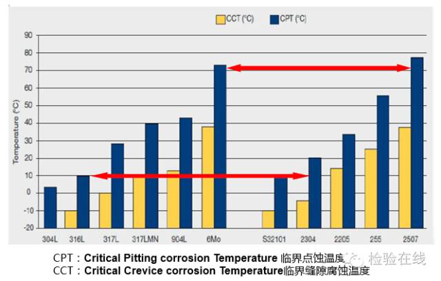 (2)除耐应力腐蚀性能外,其他耐局部腐蚀性能都优于铁素体不锈钢。
